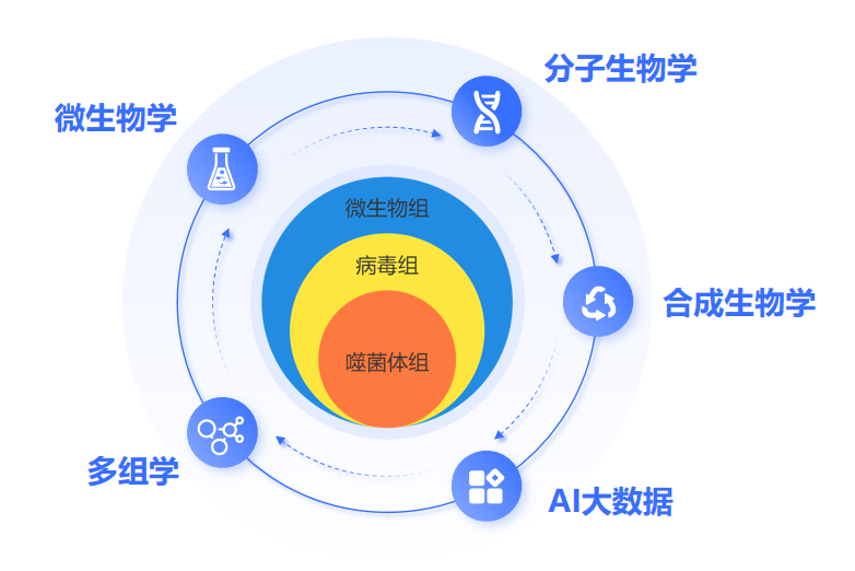 我们的团队叫“噬菌体组”,这个名字即代表了我们是一个课题组,也代表了一个聚焦的技术领域(如上图),我们会重点关注以噬菌体为代表的海洋微生物的病毒,围绕它们我们重点开展如下三个方向的研究工作: