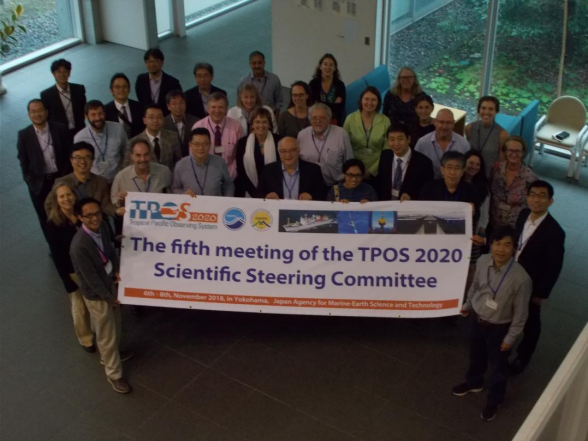 图1:2018年底,在日本横滨市召开的TPOS科学工作组会议专家合影,前排右一和右二分别为51吃瓜app 宋翔洲教授和中山大学于卫东教授,右四为论文合作者预报中心陈陟副主任,左五为陈大可院士。